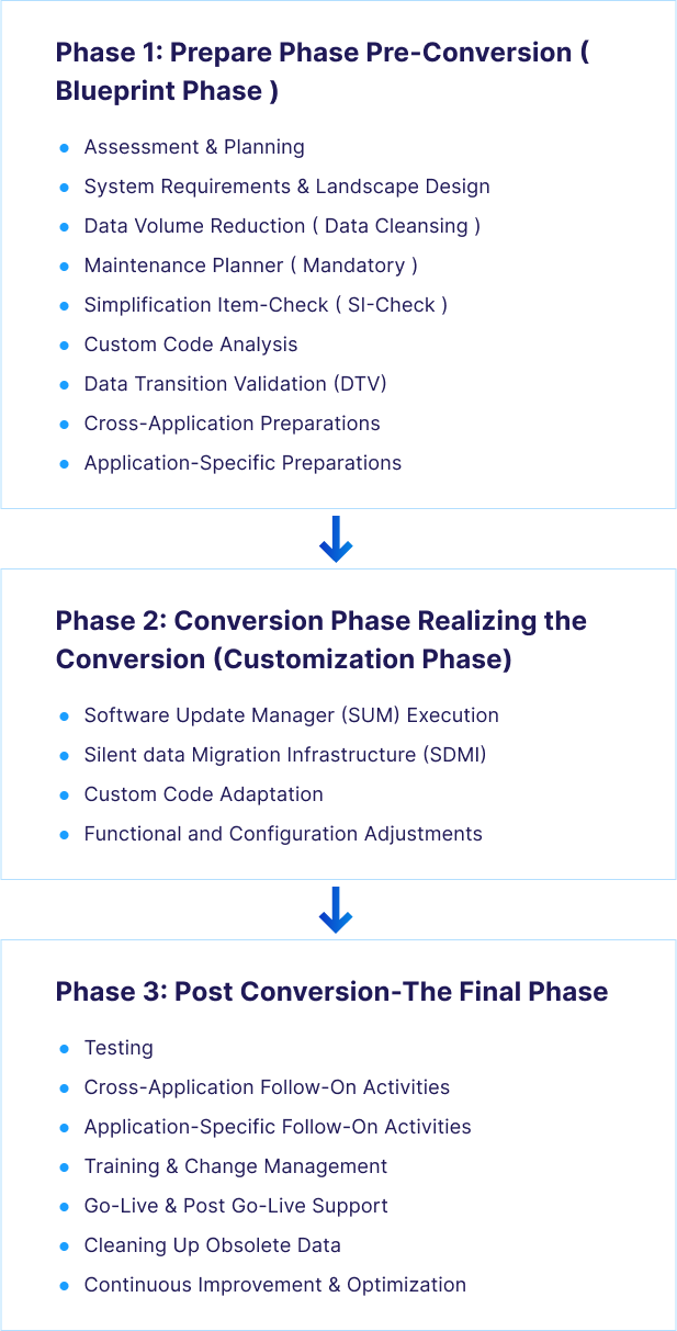 Below are the project phases & activities in the SAP ECC to SAP S/4HANA migration methodology:
